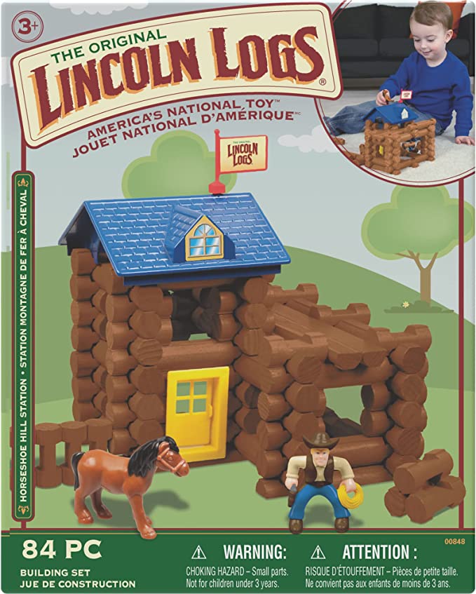 - CLASSIC TOY WITH MODERN TWIST – Build memories with your children with the LINCOLN LOGS Horseshoe Hill Station. Parents and grandparents will also enjoy reminiscing about fond childhood memories as they stack these wooden pieces with their kids and grandkids, constructing a variety of cottages and horse stables.